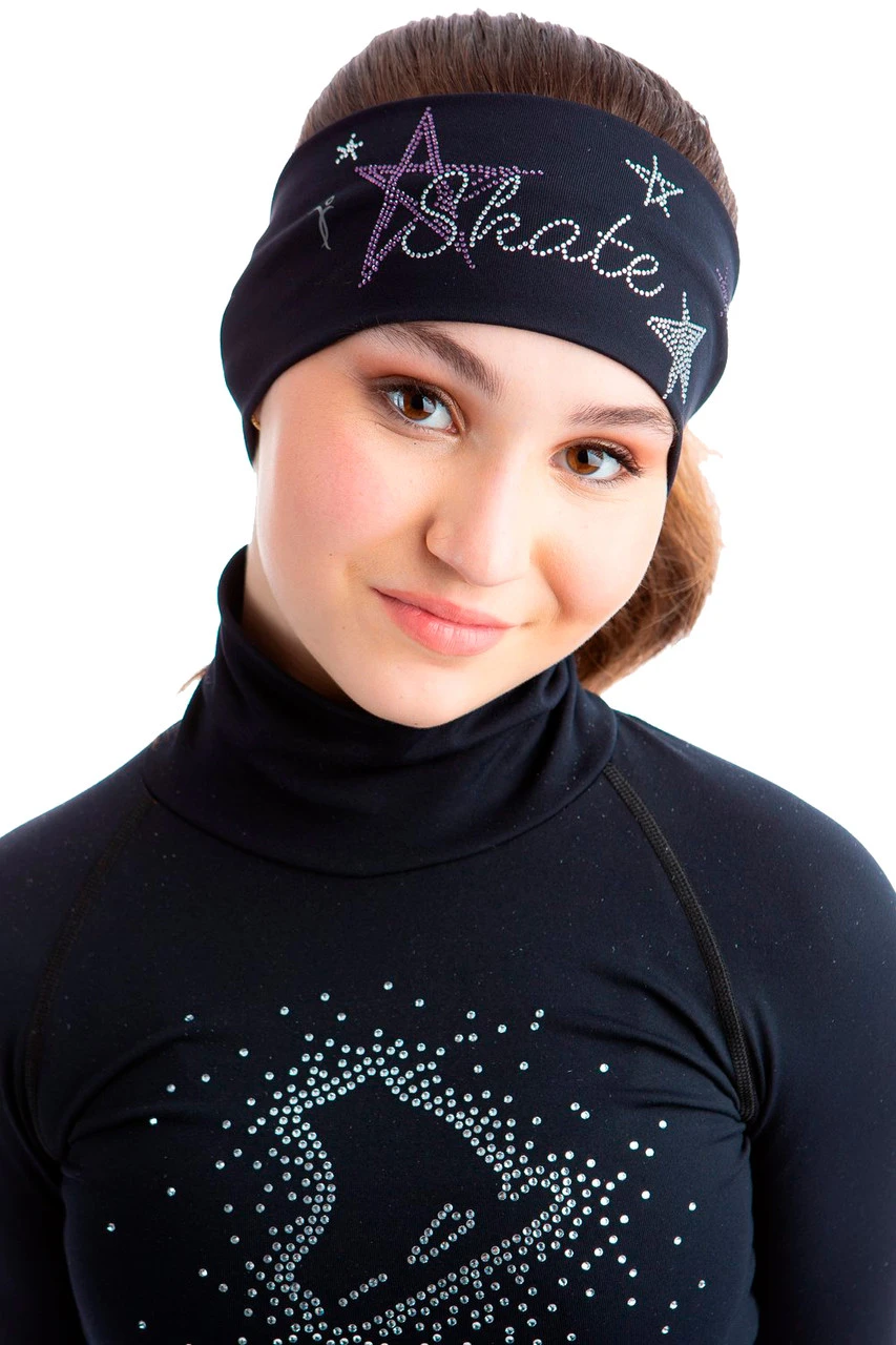 Black headband with Skate Star crystal rhinestones from the Skate Like a Star Collection by Elite Xpression