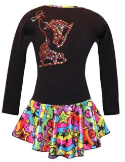 Black “Peace & Stars” Ice Skating Dress With Rainbow Mix “Pair Of Skates” Rhinestone Applique