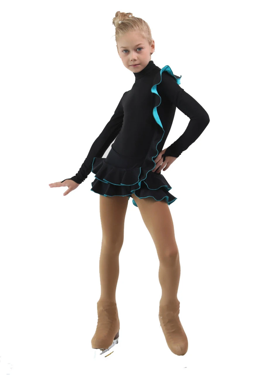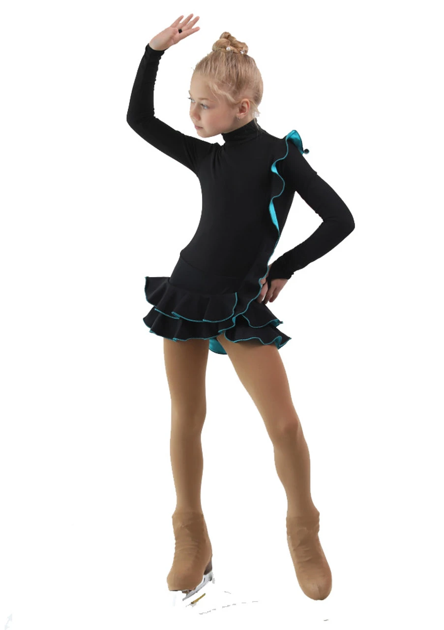 IceDress Figure Skating Dress – Thermal – Flamenco (Black With Turquoise)