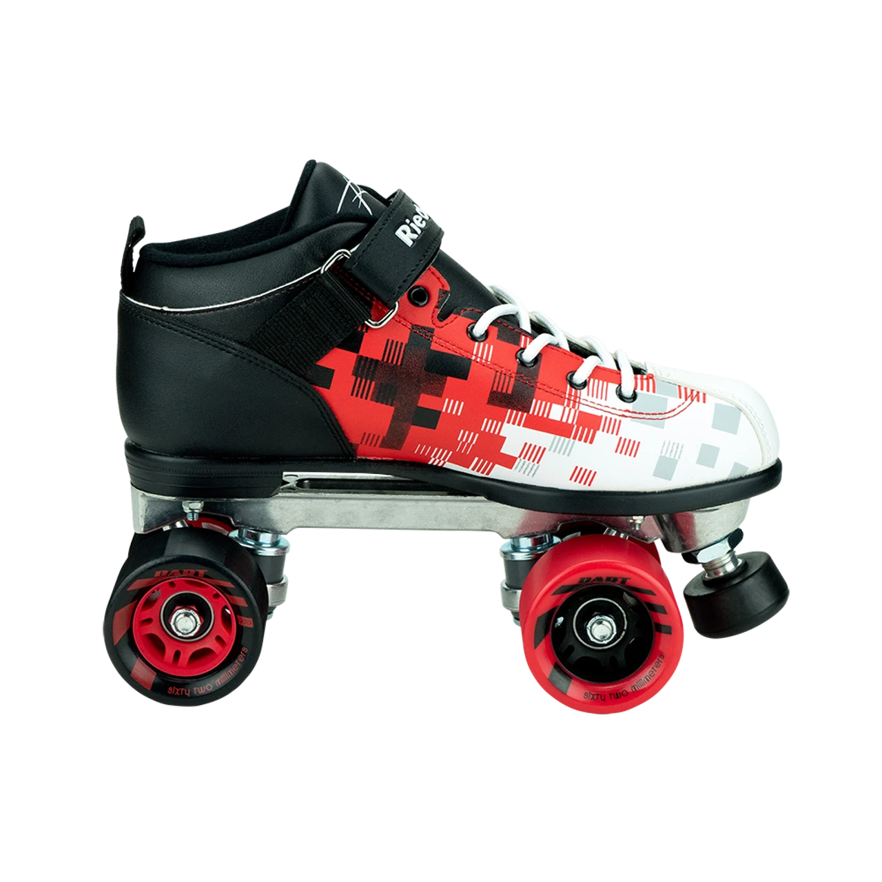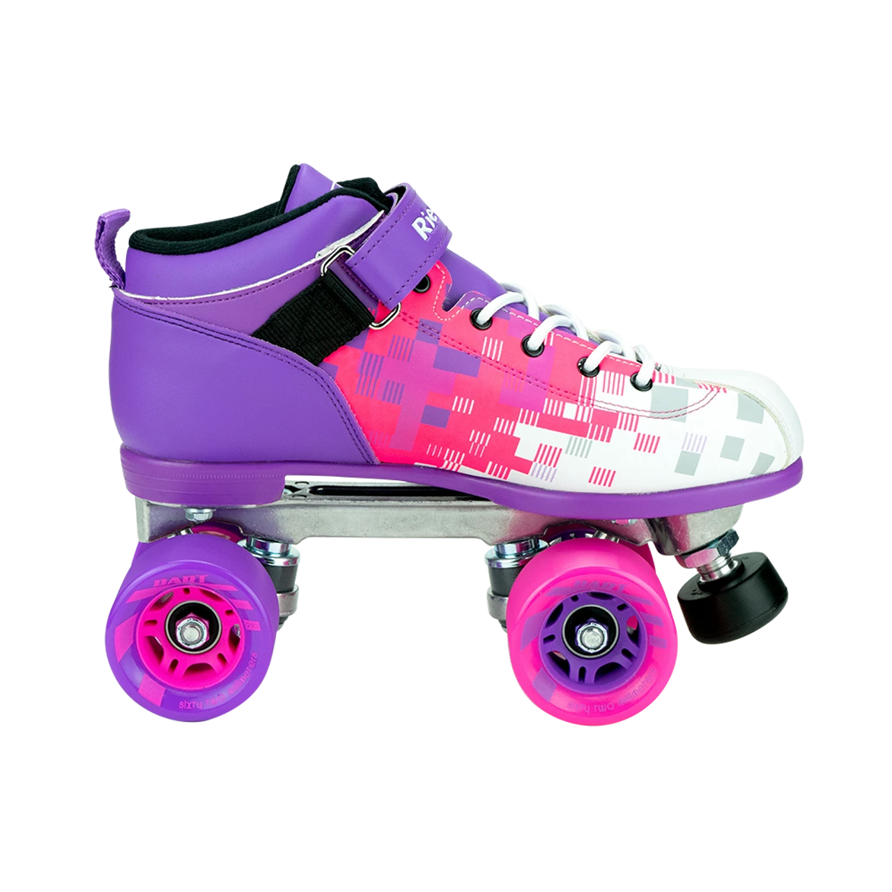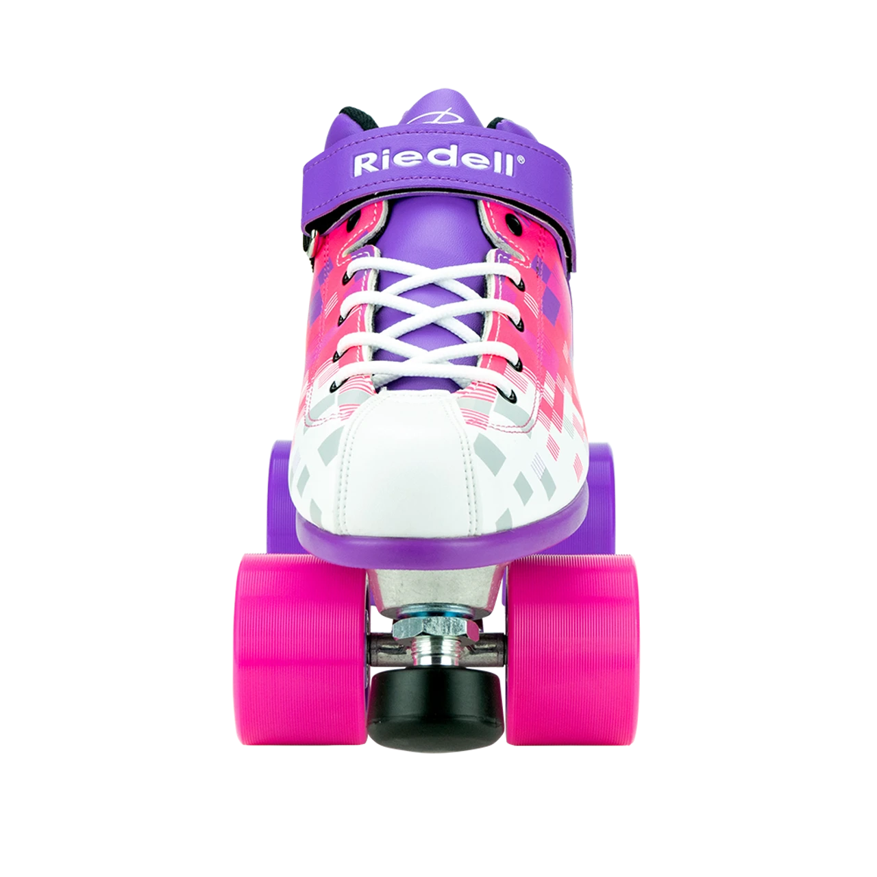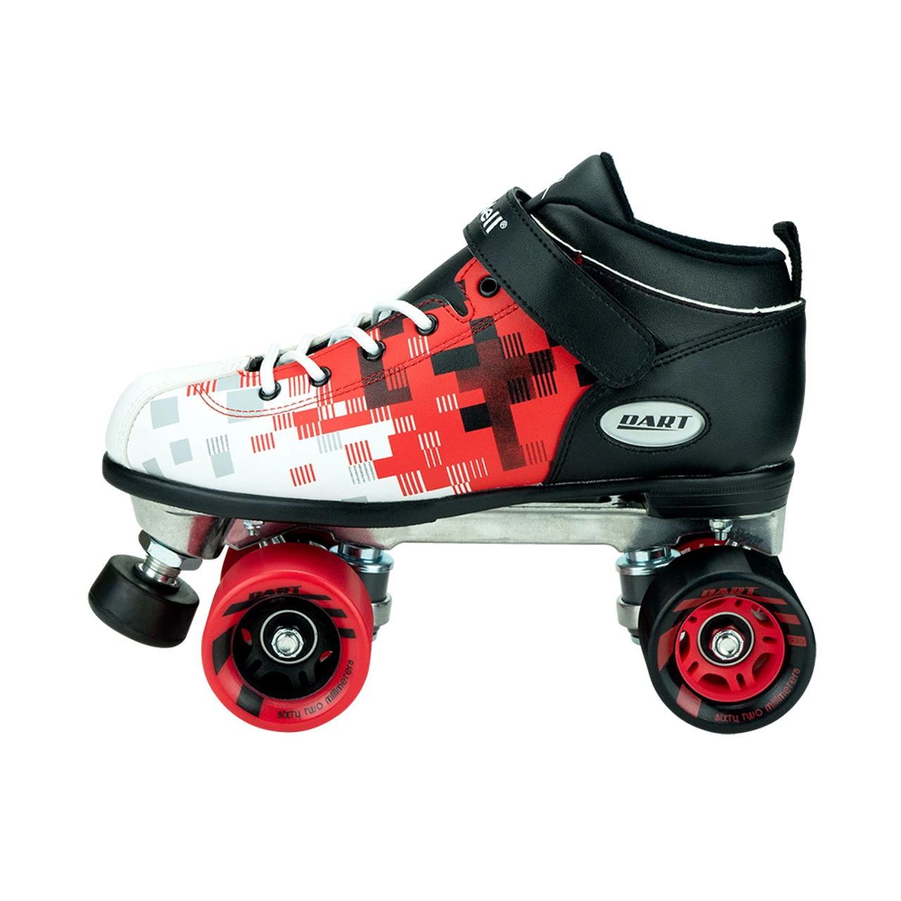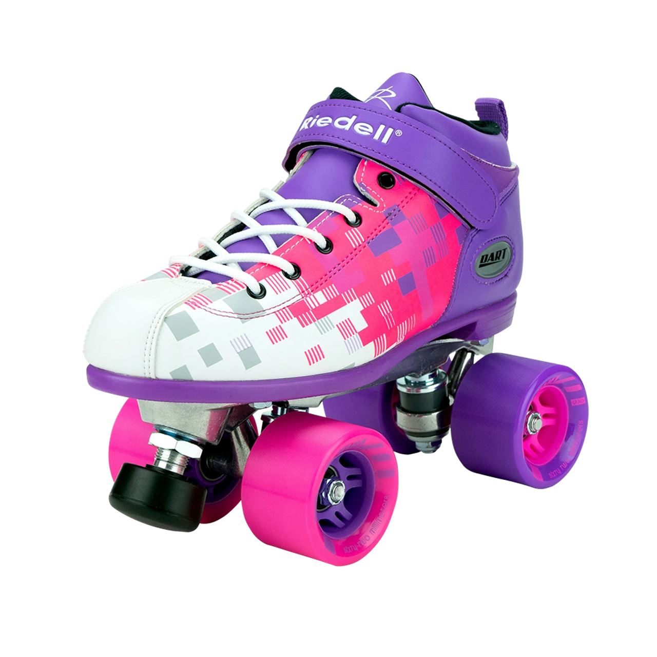 A colorful skate for the digital age! Level up with the newest edition of the Dart family, the Riedell Dart Pixel. The vinyl uppers of the boot feature a unique digital pixel, color-fade pattern that will be sure to turn some heads. The Dart Pixel comes with a die-cast aluminum plate and color matching Dart wheels. Whether you are just starting out or an avid skater, the Dart Pixel is the perfect combination of style, performance, and affordability.