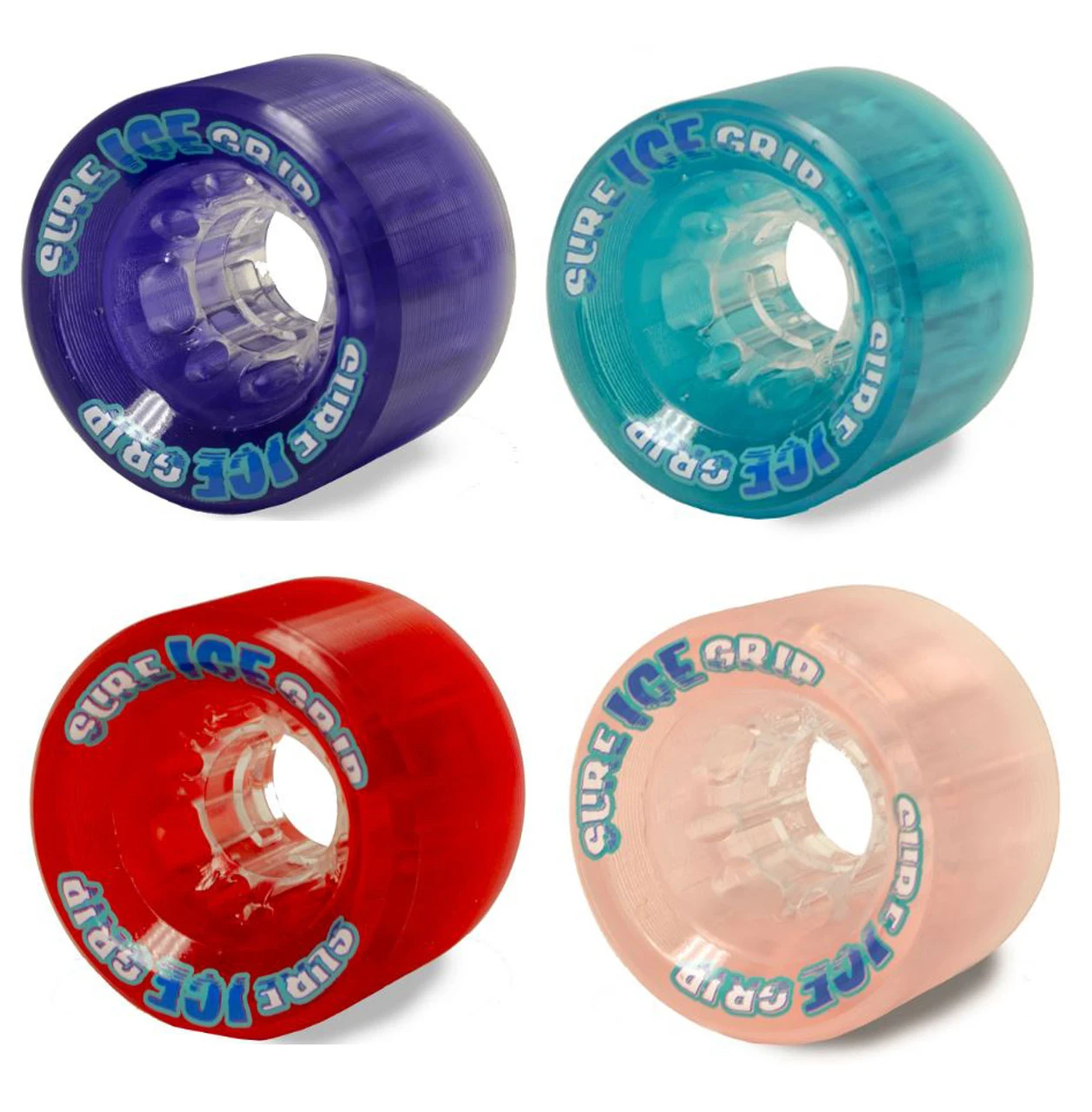 New clear nylon core wheel with special glass urethane. An excellent beginner wheel. offered in 4 different colors: pink, red, purple, and teal. 62mm x 42mm 95a hardness.