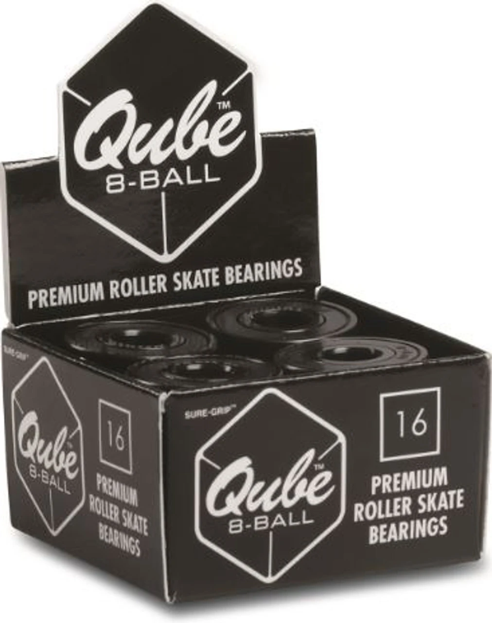 Qube 8-ball bearing. Designed to hold more side load than other bearings.
